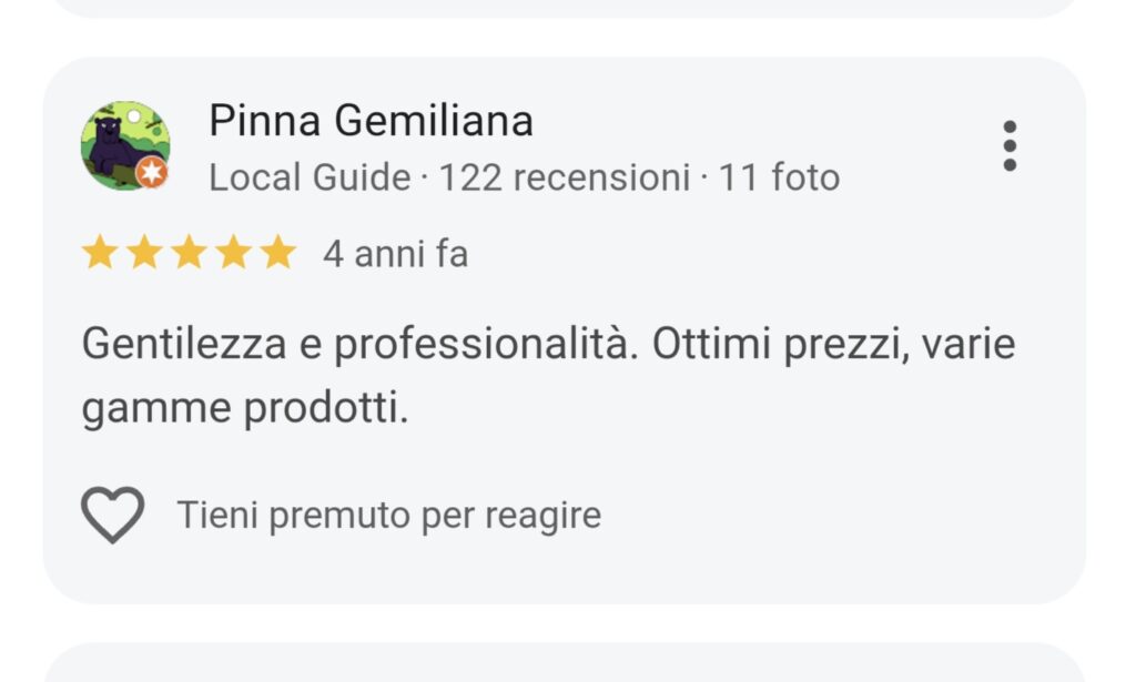 lascia una recensione su GOOGLE e aiuta altri clienti a sceglierci con fiducia